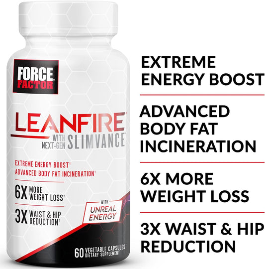 3-Pack Force Factor LeanFire with Next-Gen SLIMVANCE: Energy Pills with B Vitamins & Caffeine for Metabolism Boost & Workout Performance