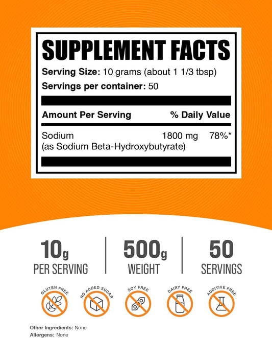 BulkSupplements.com Sodium BHB Powder - Electrolytes Supplement, Beta-HydroxyButyrate - 10g per Serving, 500g Pack