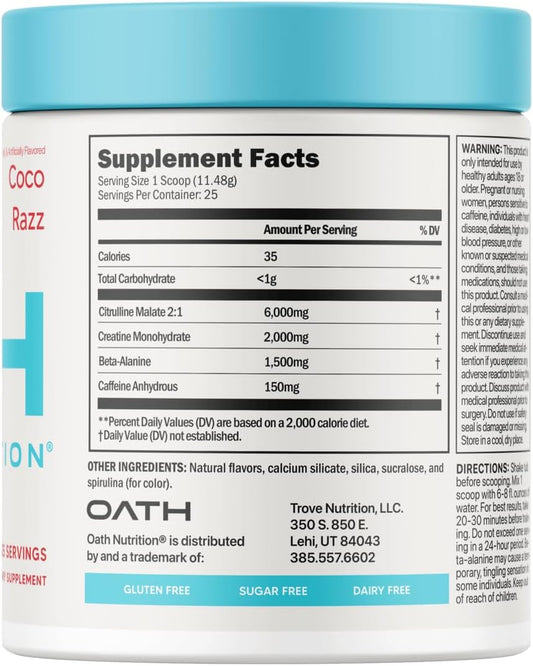 Trove Nutrition Oath Nutrition Sport Pre-Workout Stimulant with 25 Servings in Coco Razz Flavor