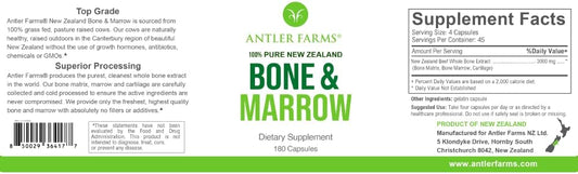 Antler Farms New Zealand Bone & Marrow Capsules - Grass Fed, Cold Processed, High in Essential Fats, Stem Cells, Collagen, Calcium - 180 Capsules, 750mg