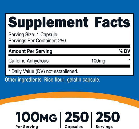 Nutricost Caffeine Pills - 100mg Per Serving - 250 Capsules (Pack of 2)