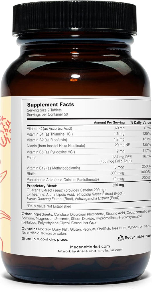 Vegetarian Guarana Caffeine Pills with Vitamin B12 for Natural Energy Boost - 100 Tablets with L-Theanine for Focus and AlertnessVendor:MécèneRegular price $110.33 AUDRegular priceUnit price / per-
