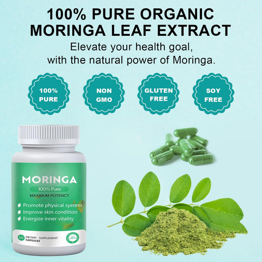 Organic Moringa Powder Capsules 800mg - Nutrient-Rich Supplement for Energy and Skin Health - 1PC