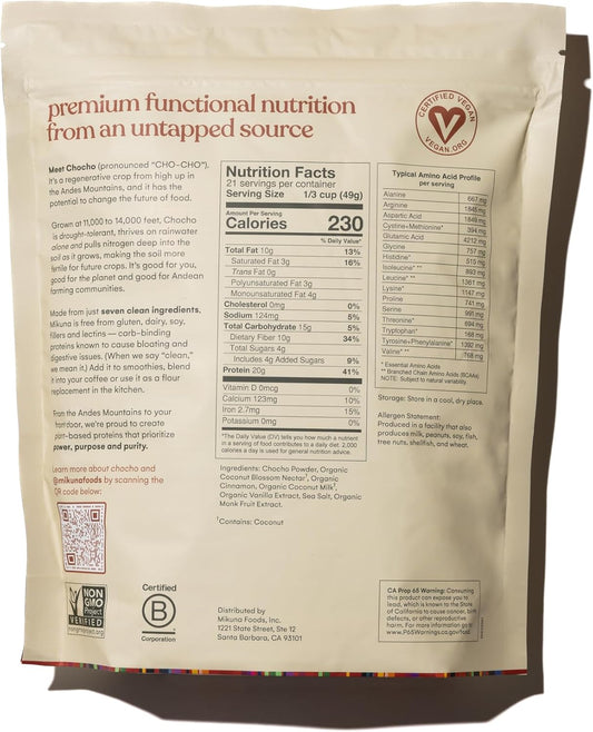 36.3 OZ Mikuna Cinnamon Horchata Chocho Protein Powder - Vegan, Gluten-Free