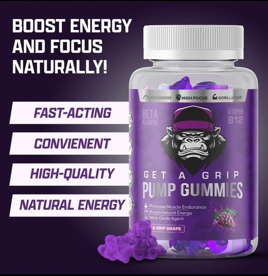 Boost Energy Naturally with Non-Stim Pre-Workout Pump Gummies - Vitamin B12, Beta Alanine, Taurine, Pink Himalayan Salt, L-Citrulline - Enhance Focus and Performance!