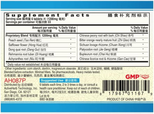 200 Tablets of Guang Ci Tang Xue Fu Zhu Yu Pian (Blood StasisClear) 200 mg - Natural Blood Stasis Relief