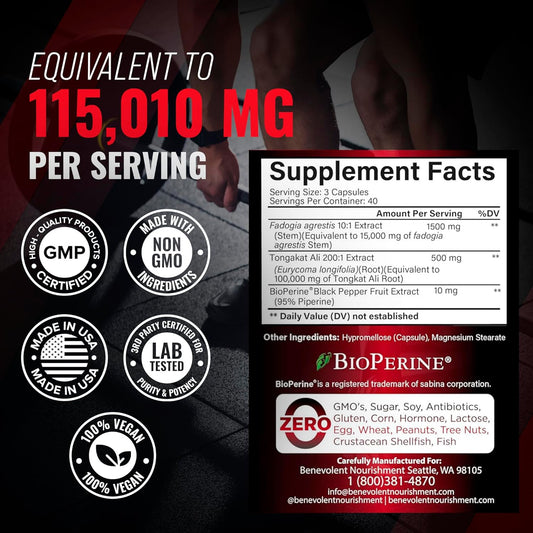 High Purity Fadogia Agrestis 1500mg Supplement with BioPerine® & Tongkat Ali - Boost Stamina, Muscle Growth, Drive - 120 CapsulesVendor:Benevolent NourishmentRegular price $127.97 AUDRegular priceUnit price / per-