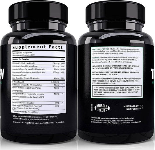 Men's TestoGen Booster - Natural Supplement for Vitality, Energy, Weight Control, Muscle Growth, and Focus - 3 Month Supply