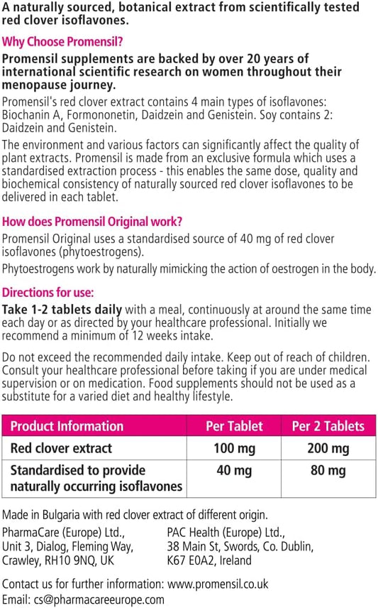 Promensil Red Clover Tablets - Natural Menopause Relief Formula with 30 Tablets