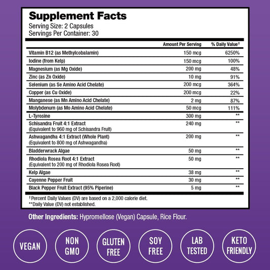 Thyroid Support Supplement for Men & Women - 60 Vegetarian Capsules with Adaptogenic Herbs, Selenium, and Iodine for Metabolism, Hormone Balance, and Mood Support