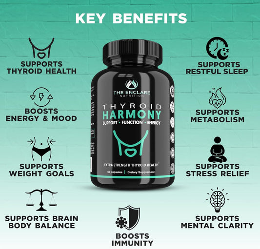Thyroid Support Supplement for Energy, Metabolism, and Mood Balance with Iodine, Ashwagandha, and Zinc - Enclare Nutrition Formula