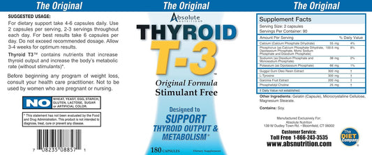 Natural Metabolism Booster Capsules for Healthy Thyroid Function, Energy & Focus - Absolute Nutrition Thyroid T-3, 180 ct.Vendor:Absolute NutritionRegular price $126.56 AUDRegular priceUnit price / per-