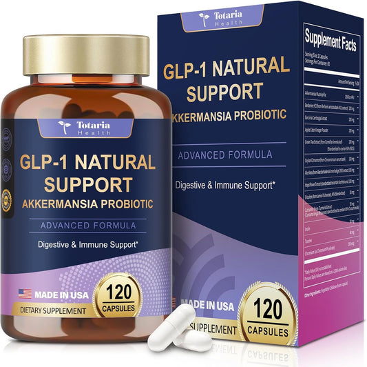13-in-1 GLP-1 Natural Support Supplement with Akkermansia Probiotic, Berberine HCI, Garcinia Cambogia, Apple Cider Vinegar, Green Tea Extract - 120 Capsules