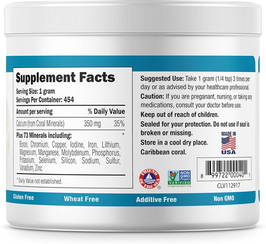16 oz Coral White Coral Ecopure Powder - Natural Coral Calcium & Minerals Supplement