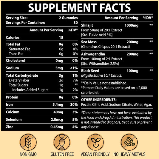 Himalayan Shilajit Gummies Gold with Ashwagandha & Gokshura - 85+ Trace Minerals - Sugar-Free for Men and Women - 60 GummiesVendor:UUNZRegular price $137.85 AUDRegular priceUnit price / per-