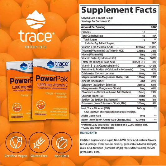 Orange Blast Electrolyte Stamina Power Pak - 30 Packets, 0.17oz (4.8g) with Trace Minerals