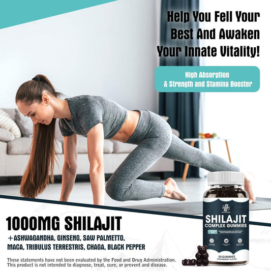 iMATCHME Shilajit Complex Gummies 1400MG with Ashwagandha for Energy and Immune Support - Men's Energy Booster, Sugar-Free Strawberry Flavor - 60 Count