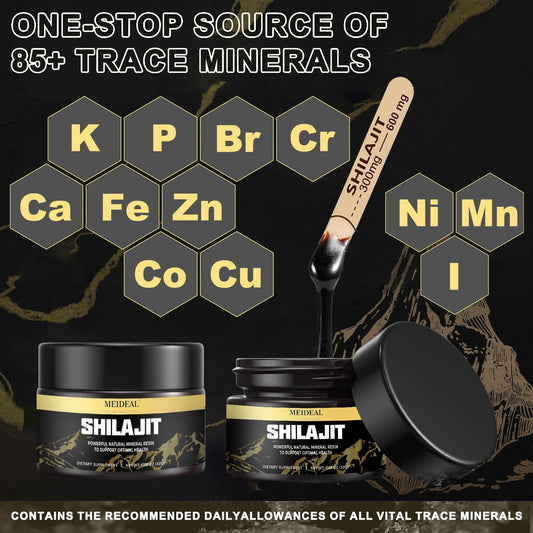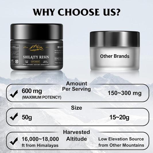 Organic Himalayan Shilajit Resin 600mg: Maximum Potency with 85+ Trace Minerals and Fulvic Acid for Energy and Immune Support (50g)