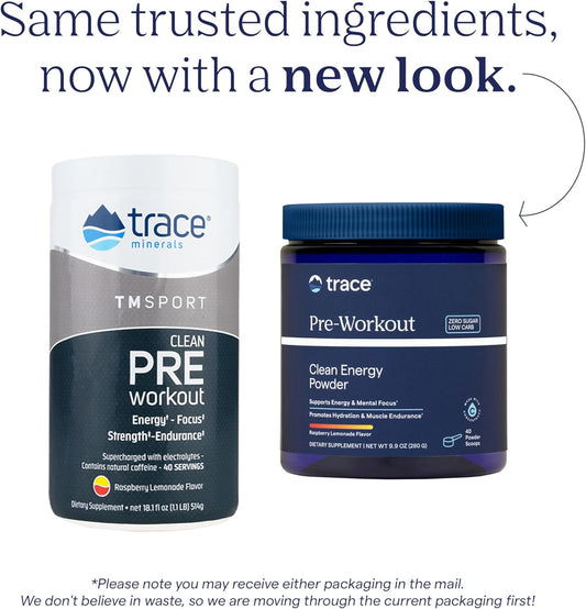 TMSPORT Series Raspberry Lemonade Pre Workout Supplement | Energy & Strength Booster with Trace Minerals | No Artificial Color | 18.1 oz, 40 Servings