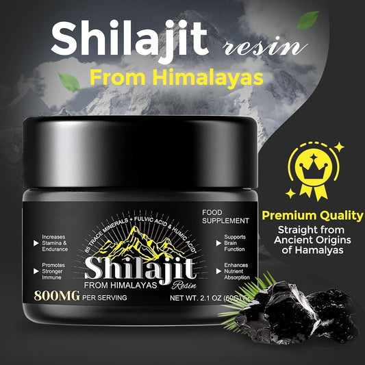 Organic Pure Himalayan Shilajit Resin 800mg - 60g Pack || Natural Shilajit for Women & Men || 85+ Trace Minerals, Fulvic Acid