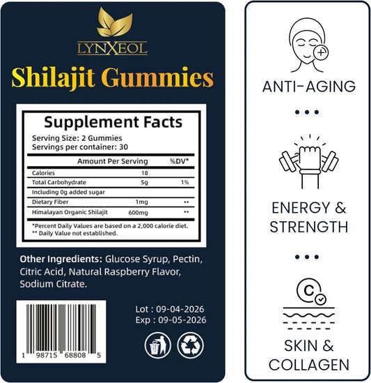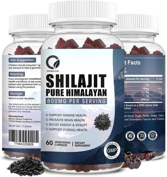 800mg Pure Himalayan Organic Shilajit Gummies - 85+ Trace Minerals, Fulvic Acid, Phytonutrients - Energy, Immune Support - 60 Gummies