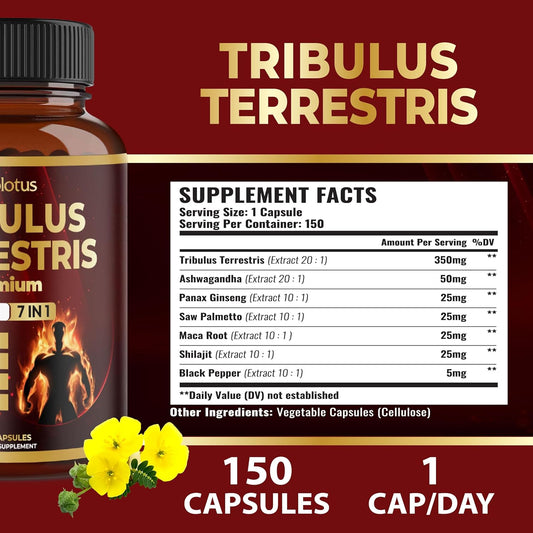 High Potency 25:1 Tribulus Terrestris Extract for Men - 1300mg Formula - 95% Saponins - 240 Capsules - Third-Party Tested