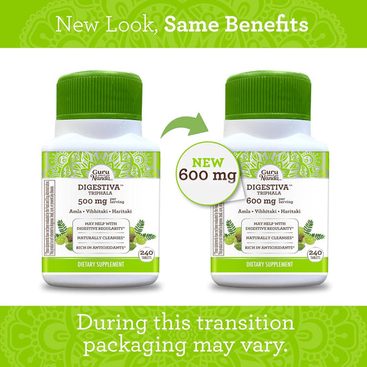 Digestive Support with GuruNanda Triphala Tablets - 240 Count, Natural Relief for Bloating & Constipation, Amla, Haritaki, and Bibhitaki Supplement
