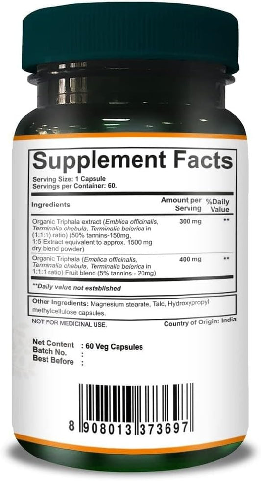 Ayurvedic Triphala Capsules for Digestive Health - Amla, Bibhitaki, Haritaki - 90 V-Capsules/ 500mg