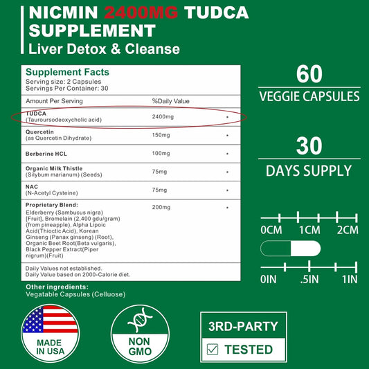 2400MG NICMIN TUDCA Supplements for Liver Detox & Gallbladder Cleanse - 180 Capsules