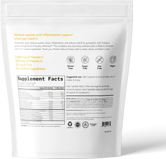 TRULEAN Everyday Wellness Immune Support and Vitamin Shot with Vitamin-C, Turmeric, Ginger, Zinc, & Echinacea - Sugar-Free & Gluten-Free - 30 Packets