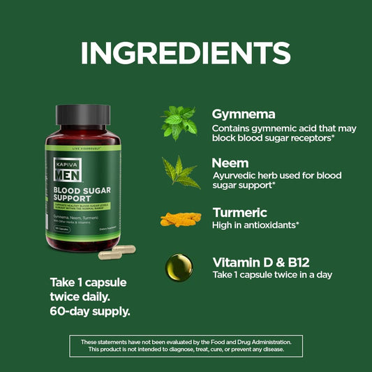 KAPIVA MEN Blood Sugar Support Supplement with Gymnema, Neem, Turmeric - 60 Capsules for Healthy Blood Sugar Levels
