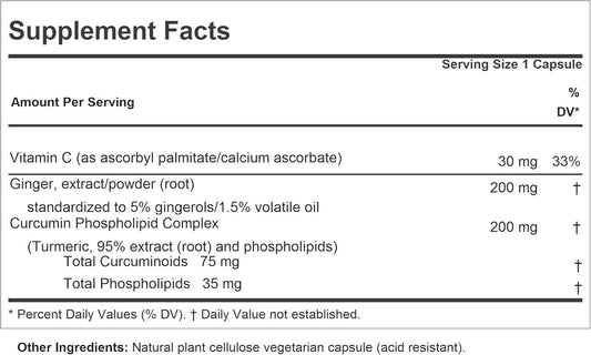 High Absorption Liposomal Turmeric Curcumin Supplement for Joint Comfort & Cellular Health with Ginger Extract