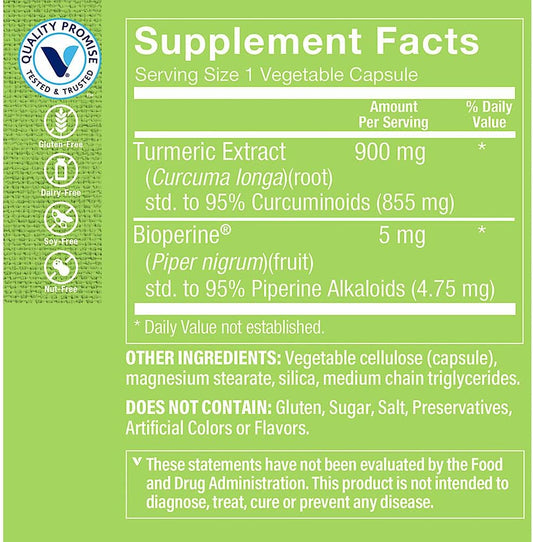 Triple Strength Turmeric with Curcumin 900mg & Bioperine - Joint Mobility Support & Antioxidant Benefits - 60 Capsules