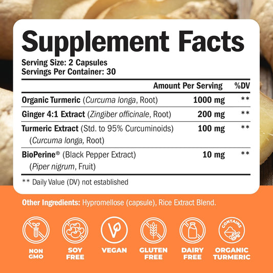 1100mg Turmeric Curcumin with Bioperine for Joint Support - Enhanced Absorption with Vitamins C, D3, E, and B2 - 35 Servings