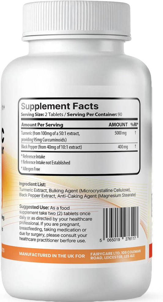 Turmeric and Black Pepper Tablets 5000mg | 95% Curcumin Extract | 180 Vegan Capsules | Men and Women's Supplements