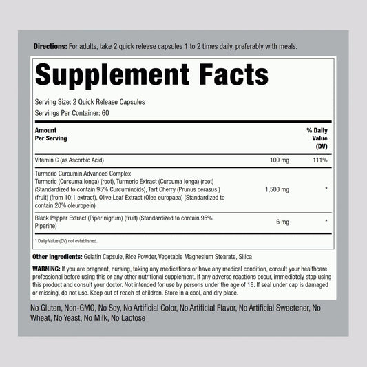 Advanced Turmeric Curcumin Complex 1500mg with Black Pepper & Tart Cherry | 120 Capsules | Non-GMO, Gluten Free Formula