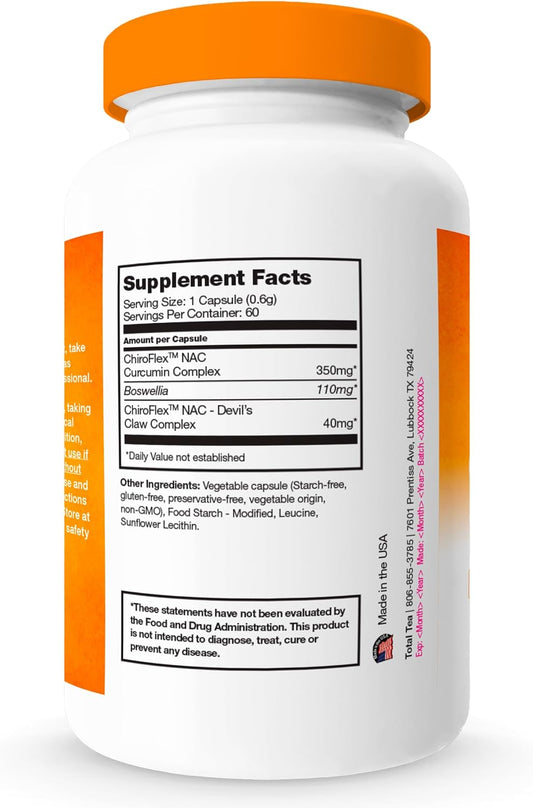 Chiroflex Turmeric and Curcumin Capsules with Boswellia - 2X Strength Joint Support Supplement (60 Caps)