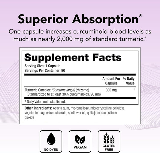 High-Absorption Turmeric Curcumin Supplement - 90 Capsules - NSF Certified - Supports Brain, Heart, Immune & Joint Health - 90-Day Supply - Promotes Healthy Aging