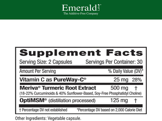 Emerald Labs Meriva Turmeric Plus Capsules with PureWay-C Vitamin C & OptiMSM - Joint Health & Immune Support - 60 Veg Caps