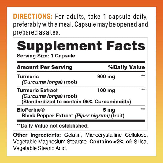 Turmeric Curcumin 1000mg with BioPerine Black Pepper Extract, 95% Curcuminoids, Antioxidant & Joint Support, Gluten-Free - 60 Capsules