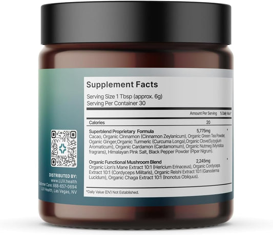 Organic Energy and Wellness Powder with Cacao, Turmeric, and Adaptogens - 30 Servings