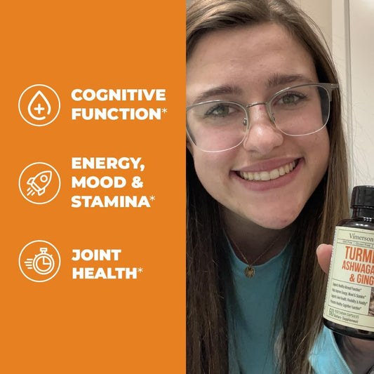Organic Turmeric Curcumin Ashwagandha Capsules with Black Pepper - Joint Support & Energy Boost - 60ct
