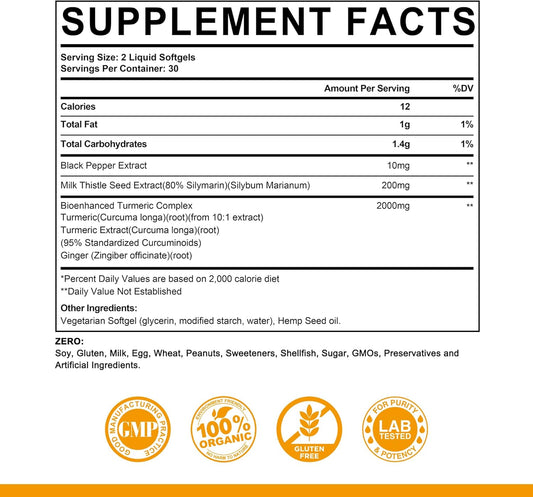 5-in-1 Turmeric Curcumin Softgels 2000mg with Milk Thistle & Black Pepper - Immune & Liver Support - 95% Curcuminoids - Turmeric & Ginger Supplement