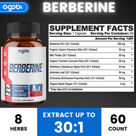 Berberine Supplement with Ceylon, Milk Thistle, Turmeric, Elderberry - 60 Count for Immune, Cardiovascular & Gastrointestinal Support