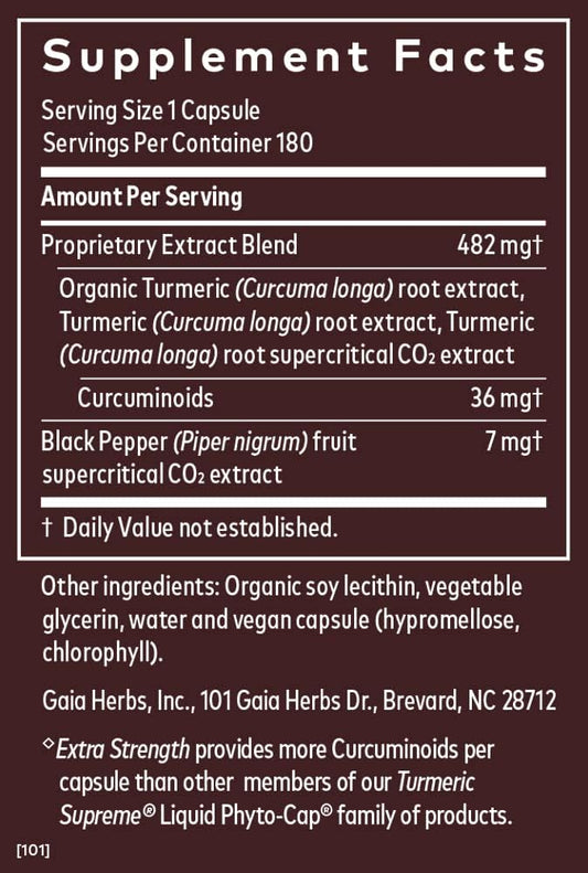 Gaia Herbs Turmeric Supreme Extra Strength - Supports Joint Comfort with Turmeric & Black Pepper - 180 Vegan Liquid Capsules