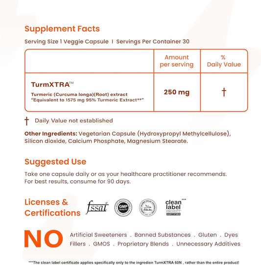 High Absorption Turmeric Capsules - 100% Natural, Water Dispersible, 1575mg 95% Curcumin Equivalent - 30 Capsules