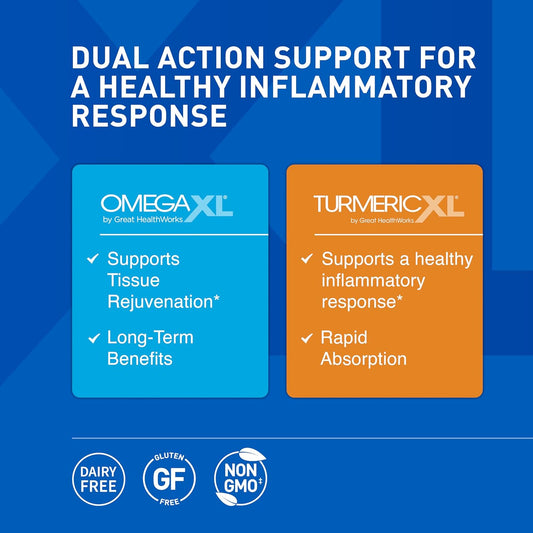 OmegaXL Joint and Muscle Support Supplement (60 Count) & TurmericXL Inflammatory Response Supplement (30 Count) for Overall Wellness
