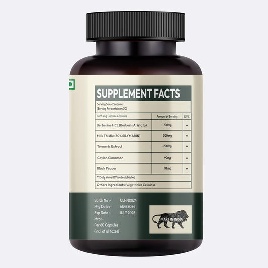 Premium High-Potency Hurbix Nutrition Berberine 1300mg with Milk Thistle, Turmeric, and Cinnamon - 5 in 1 Enhanced Formula - 60 Capsules