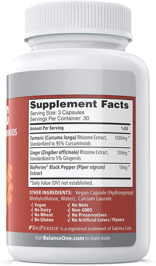 1800mg Turmeric Curcumin with 95% Curcuminoids, Enhanced Absorption with Black Pepper, Vegan Joint & Muscle Support, Non-GMO - 90 Capsules