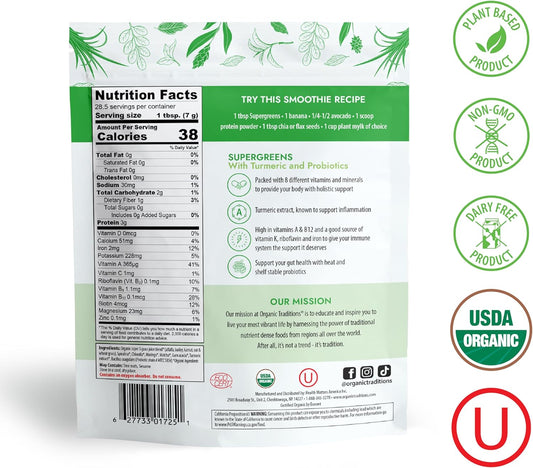 Organic Traditions Super Greens Powder with Turmeric - 200g Bag